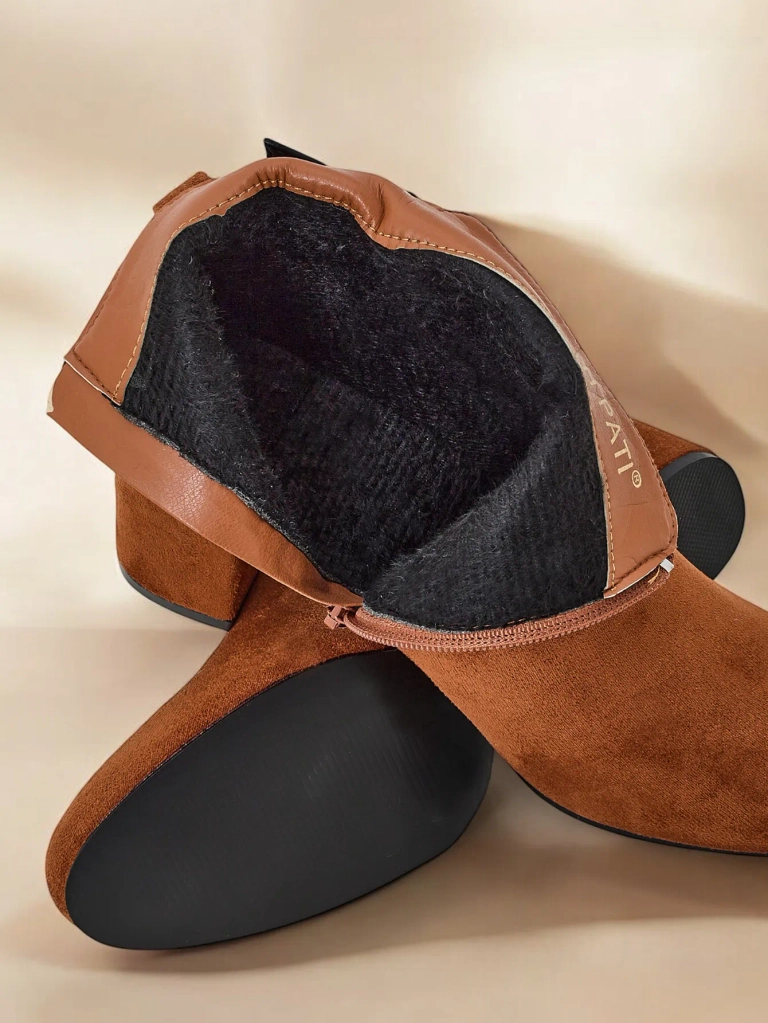 - Dámske členkove topánky sú perfektným riešením v chladnejších dňoch. Vrchná časť je vyrobená z ekologickej suede a je zatvorená na zips, vnútri je vsadený kožuch. Model má platformový podpätok a okrúhlu špičku. Skvelá príloha k vašim každodenným outfitom!