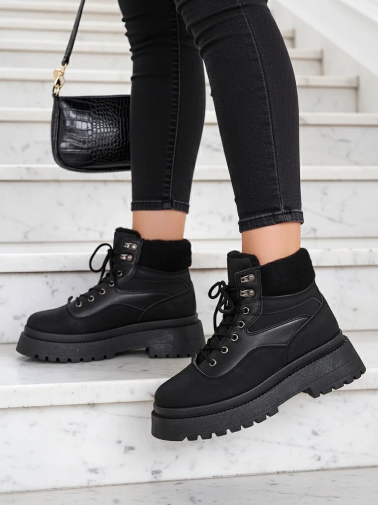 - Klasické dámske snehové topánky s hrubou podrážkou. Horná časť vyrobená z syntetické kože. Vnútorná časť s podšívkou vo forme falošného kožušiny, všité topánky. Ideálne pre chladnejšie obdobie!