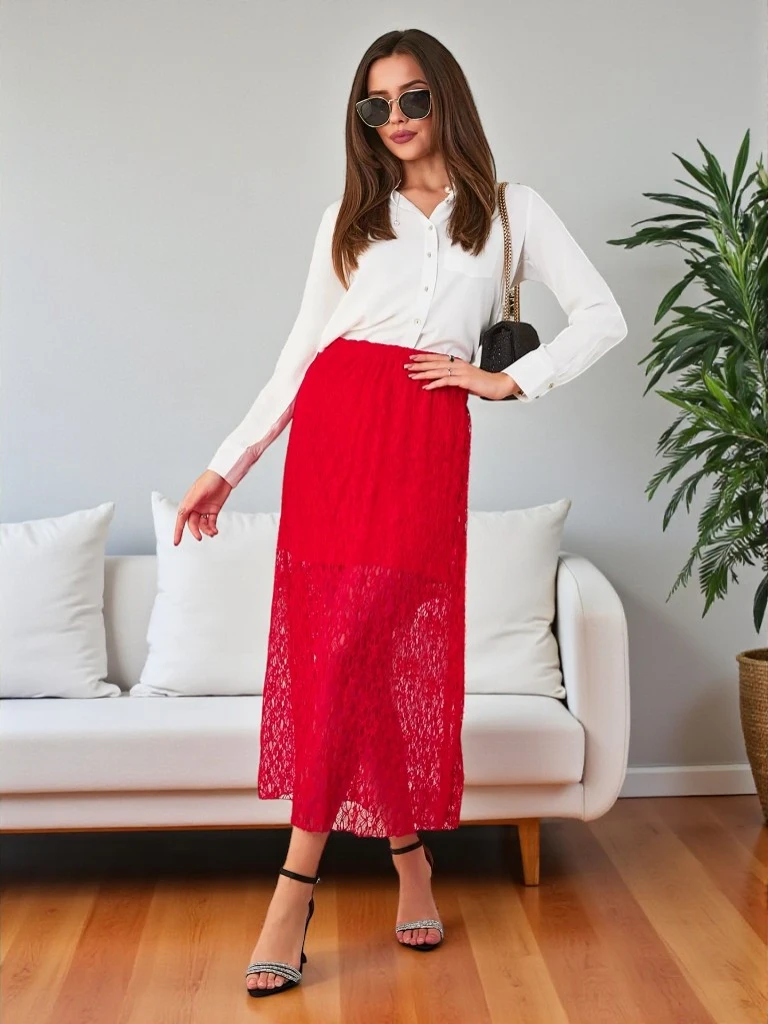 • Dámska midi sukňa vyrobená z ľahkého materiálu. Model so šitím a vonkajšou vrstvou čipky, s elastickým pásikom v pase. Sukňa bude skvelá na jeseň! POZNÁMKA: Presnosť merania (+/-) 1 cm.