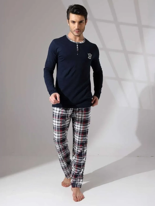 - Elegánstne pánske pyžamá s jedinečným potlačou a kockované nohavice. Vyrobené z vysokokvalitnej bavlny, zaručuje pohodlný spánok a štýlový vzhľad. POZOR: Presnosť merania (+/-) 1 cm.