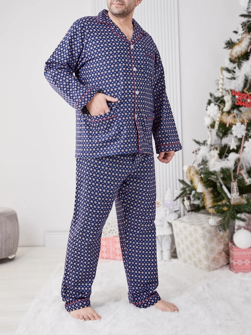 - Pánske pyžamo s modernou potlačou, vyrobené z bavlneného materiálu. Model má dlhé rukávy a nohavice. Vrchná časť sa zapína na gombíky. Pohodlie a elegancia v jednom!