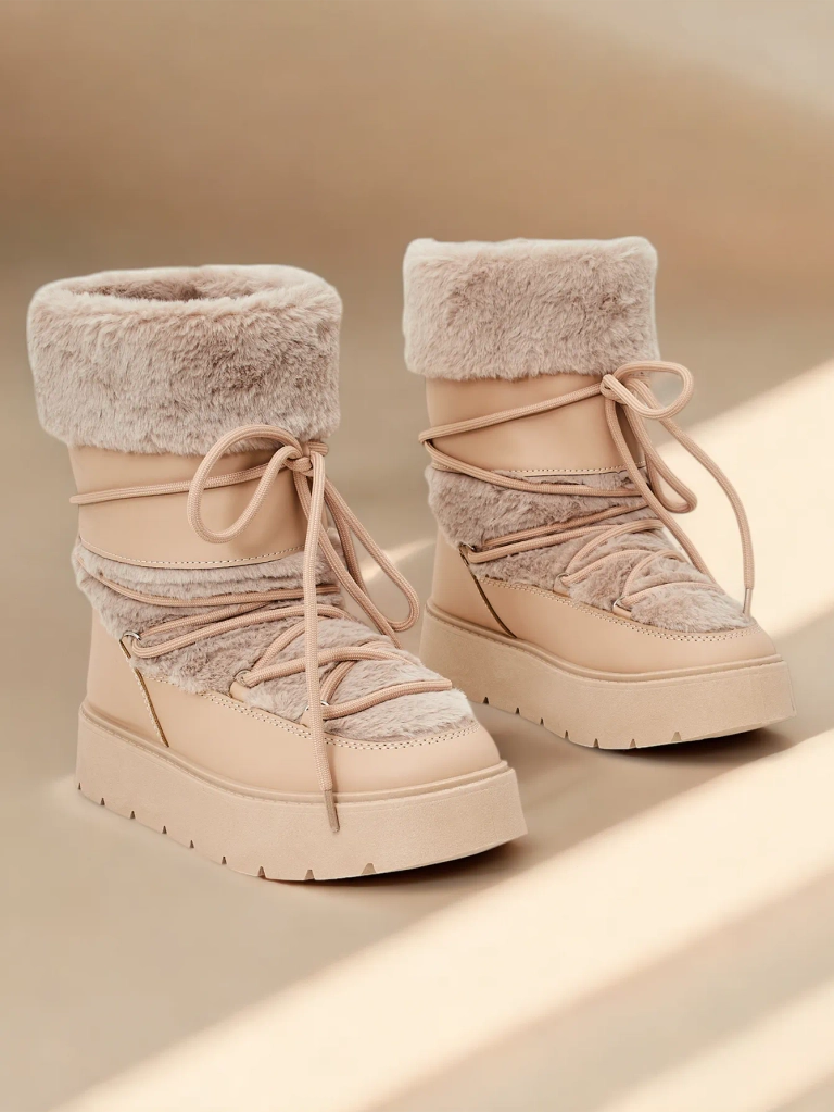 - Dámske sněhule s hriadeľom vyrobené z kombinácie eko-kože a príjemnej látky. Vnútri je príjemná podšívka z kože, obuv má šnurovaný hriadeľ. Perfektné na zimu!