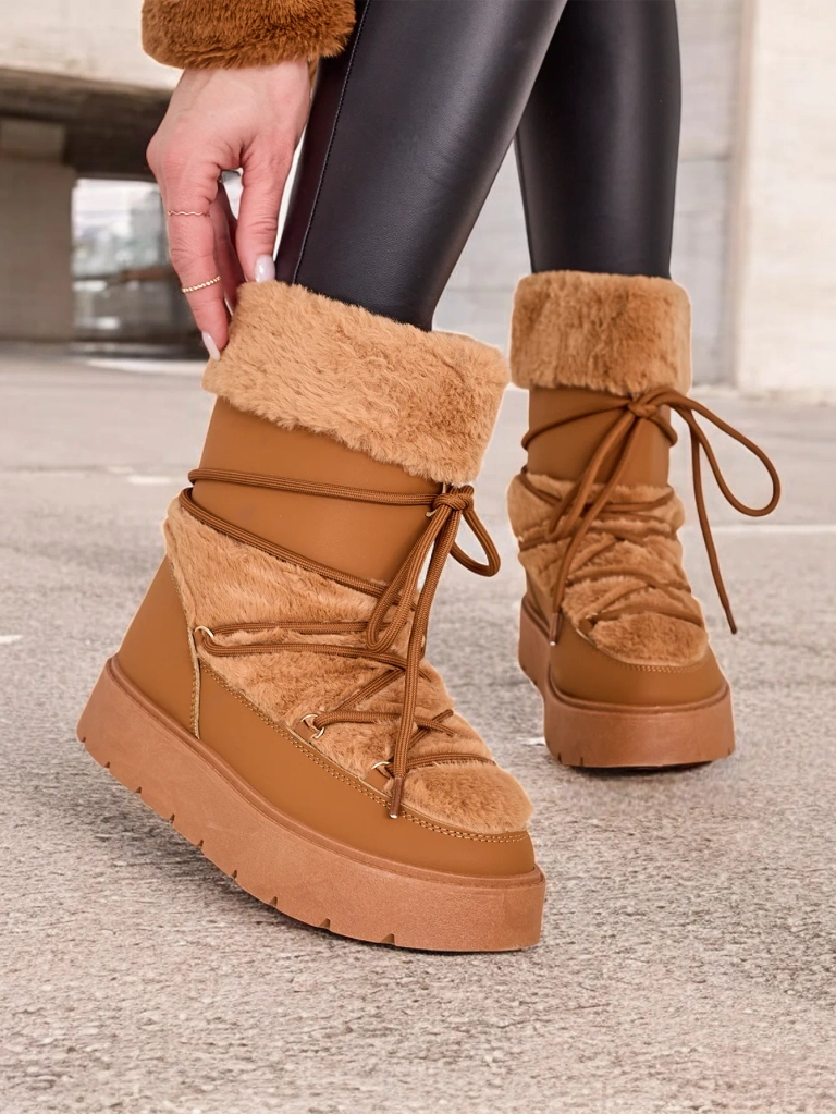 - Dámske sněhule s hriadeľom vyrobené z kombinácie eko-kože a príjemnej látky. Vnútri je príjemná podšívka z kože, obuv má šnurovaný hriadeľ. Perfektné na zimu!