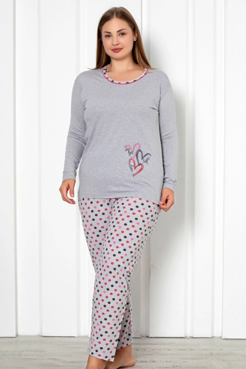 Royalfashion Dámske bavlnené pyžamo 2-dielne s bodkami VEĽKOSŤ PLUS
