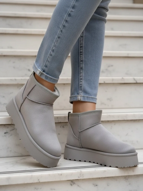 • Skvelé zimné snehové topánky pre ženy na platforme. Horná časť je vyrobená z ekokožešiny, s kožušinovou výstielkou. Ideálna základňa pre zimu!