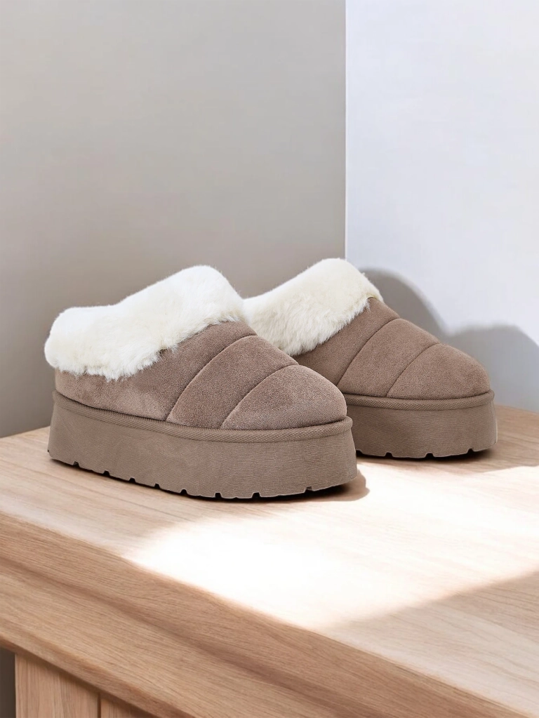 - Mága štýlové krátke dámske izolované snehové topánky vyrobené z ekologickej semišovej kože. Majú podšívku naplnenú kožušinou. Topánky na vysokom podrážkovom podpätku - perfektné pre zimné neformálne outfity!