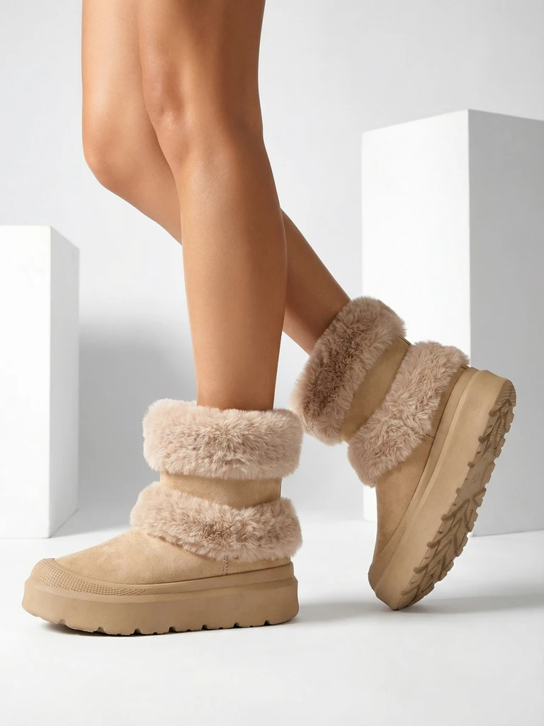 - Ženské snehule s holením z kombinácie semišu ekokože a príjemné látky. Vnútri útulný kožušina. Ideálne na zimu!