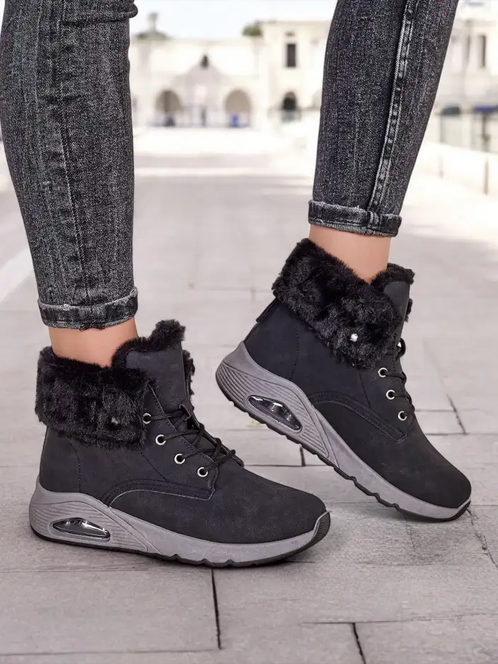 - Dámska zateplená športová obuv v štýle tenisiek na pohodlnej podrážke. Šnurovací zvršok je vyrobený z ekologickej kože. Vo vnútri mäkká kožušina. Skvelý doplnok k vašim zimným neformálnym outfitom!