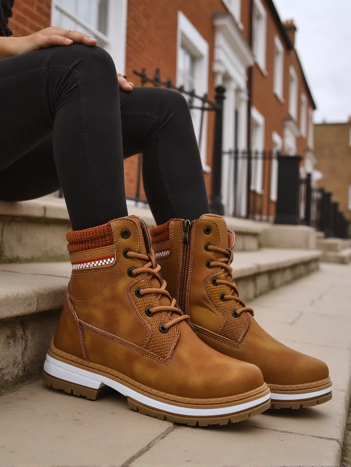 - Dámske turistické topánky s šnurovaným zvrškom a zipsom na boku. Materiál je z umelé kože. Vnútro obuvi je vystlané kožušinou. Perfektné na zimu!