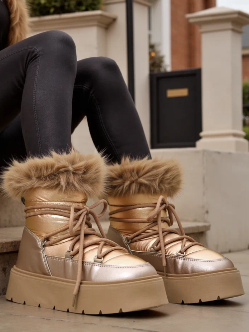 - Dámske snehové topánky s vrchom vyrobeným z kombinácie olejovky a ekokože. Vo vnútri je príjemná podšívka, topánky sú na obutie a šnurovanie. Ideálne na zimu!