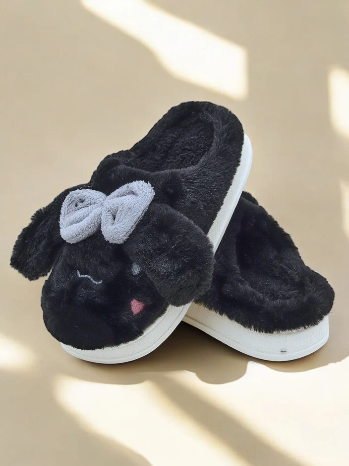 - Úžasné dámske papuče na plochom podrážke, ozdobené mašľou. Model je vyrobený z materiálov, ktoré imituju kožušinu. Skvelá voľba pre domácu módu!
