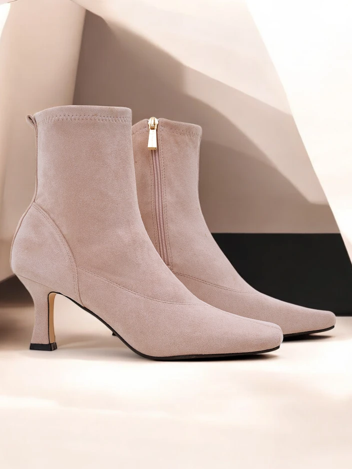 • Štýlové dámske členkové čižmy z ekologickej semišovej kože - dokonalé riešenie na chladnejšie dni. Model je na zips a má ekologickú koženú stielku. Čižmy s podpätkom a štvorcovou špičkou.