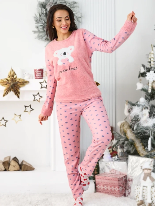 • Dámsky dvojdielny pyžamový set s dlhými rukávmi a dlhými nohavicami, vyrobený z fleecového materiálu. Model je zdobený potlačou. Ideálne na útulné večery doma! POZNÁMKA: Presnosť merania (+/-) 1 cm.