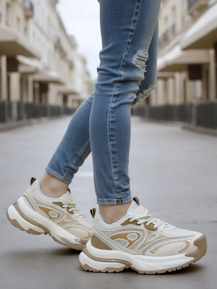 • Dámske športové topánky v podobe platformových tenisiek. Vyrobené z eko-kože a textilu. Skvelý doplnok k vašim každodenným neformálnym outfitom!