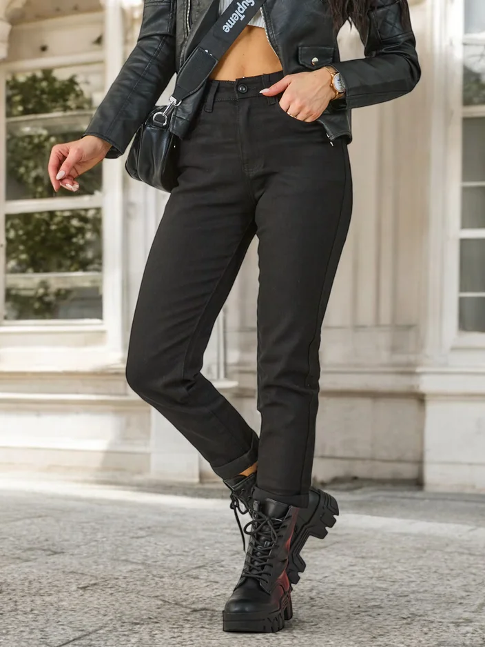 - Štýlové dámske mom džínsy vyrobené z bavlneného materiálu. Model má vysoký pás, zapínanie na gombík a zips a 4 vrecká. Nevyhnutnosť v každom šatníku!