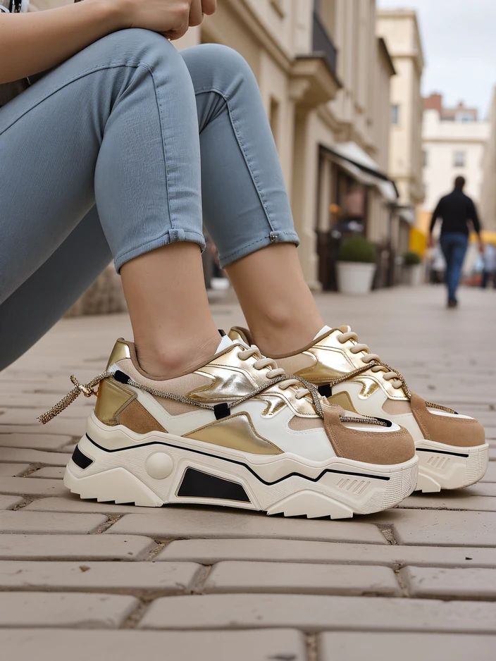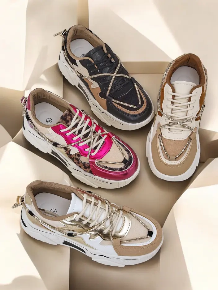 - Dámske tenisky s plochou podrážkou, dokonalá kombinácia štýlu a pohodlia. Obuv vyrobená z ekokože. Šnurovací model s dekoračným šnurovaním zdobeným krištáľmi. Ideálne pre aktívnych jedincov!