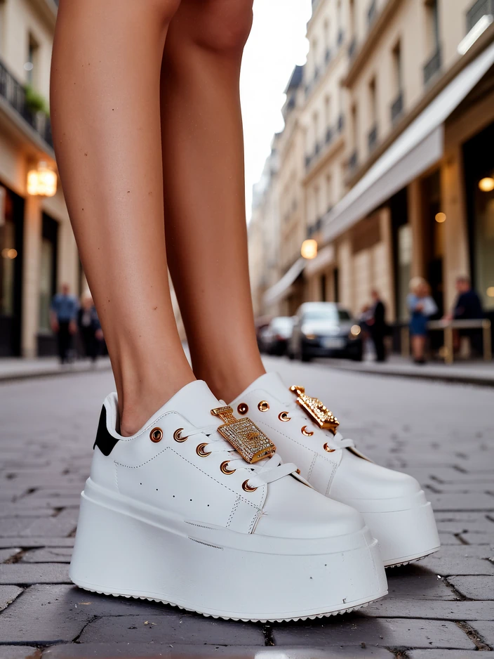 - Dámske tenisky vyrobené z eko kože na platforme. Model so šnúrkami a eko-koženou stielkou. Obuv má ozdoby na šnúrkach. Ideálne na vytváranie štýlových outfitov!