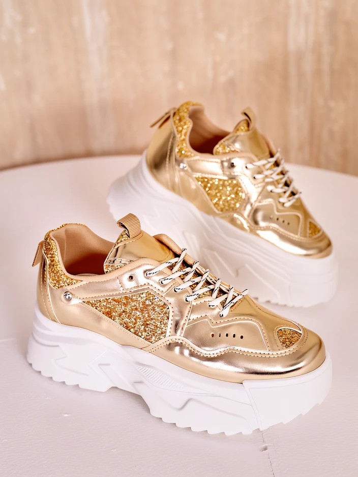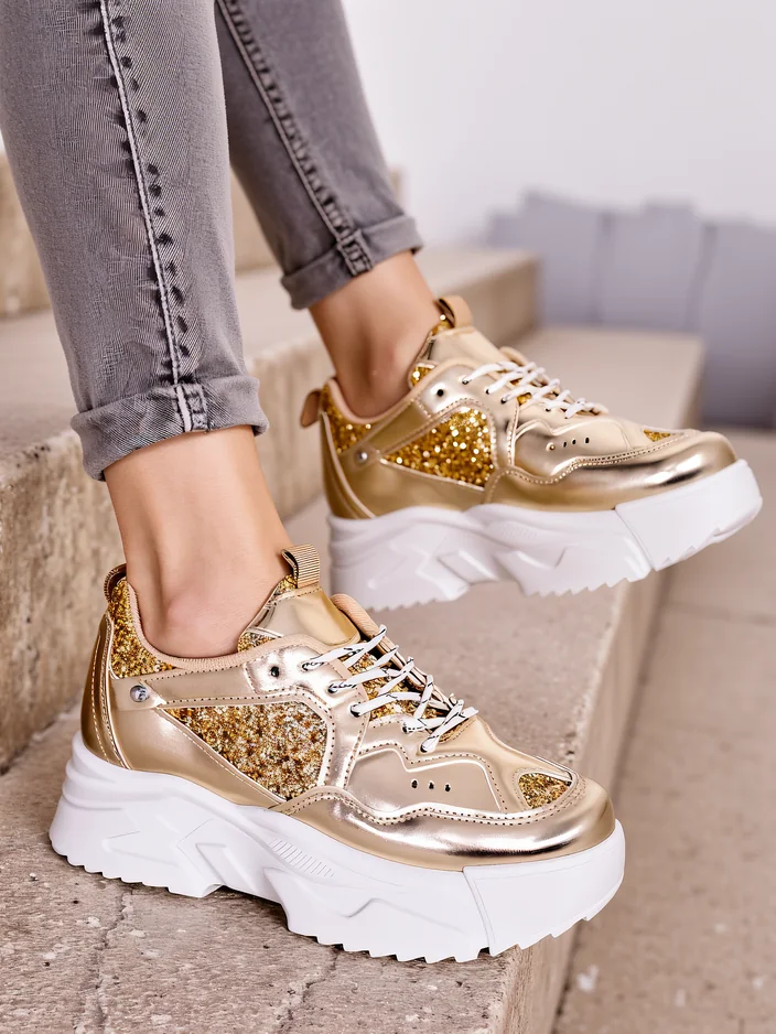 - Dámske športové topánky v štýle tenisky s plochou podrážkou. Vyrobené z eko-kože s trblietavými akcentmi. Stielka je z eko-kože. Skvelý doplnok k vašim každodenným neformálnym outfitom!
