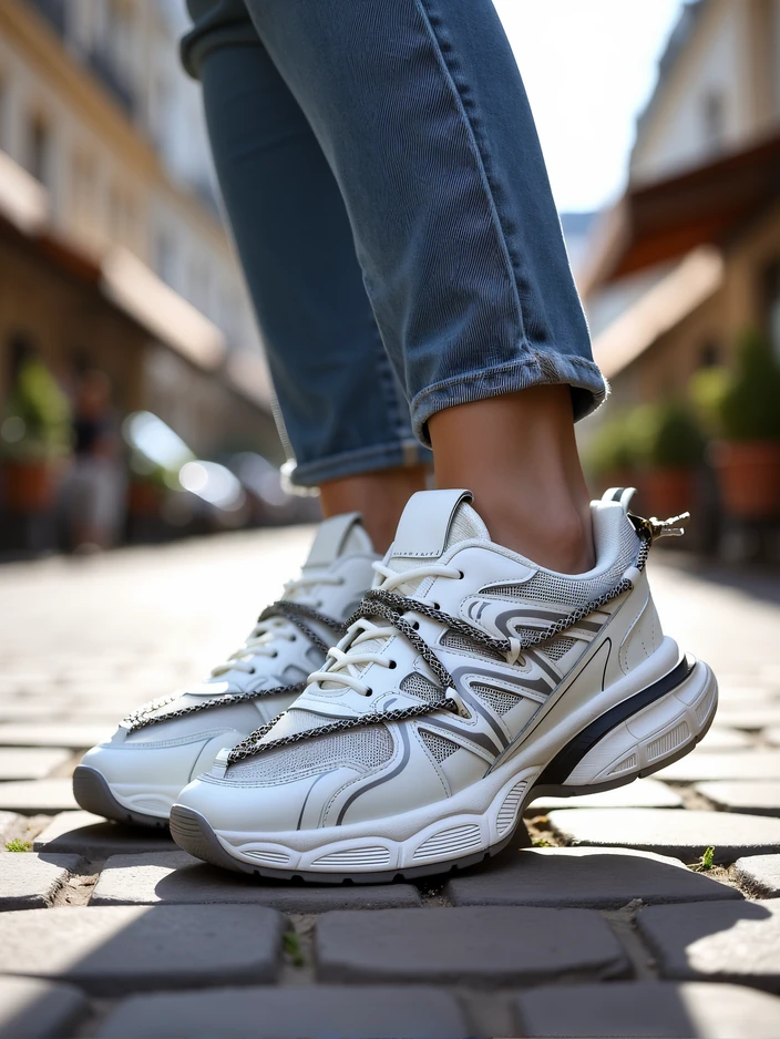 - Dámske športové topánky v štýle tenisky s hrubšou podrážkou. Vyrobené z eko kože a sieťoviny s textilnou stielkou. Skvelý doplnok k vašim každodenným casual outfitom!