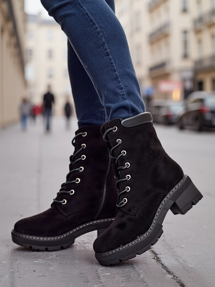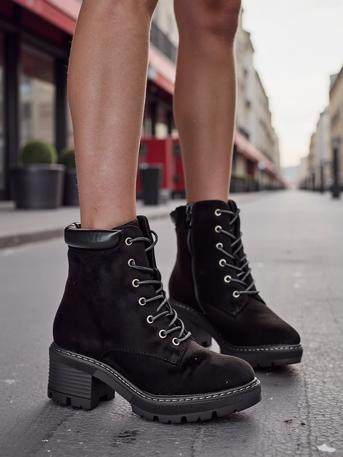 - Unikátne členkové topánky vyrobené z suède eko-kože s textilnou stielkou. Šnurovacie topánky so zipsom. Model na bloku. Perfektné na jeseň!