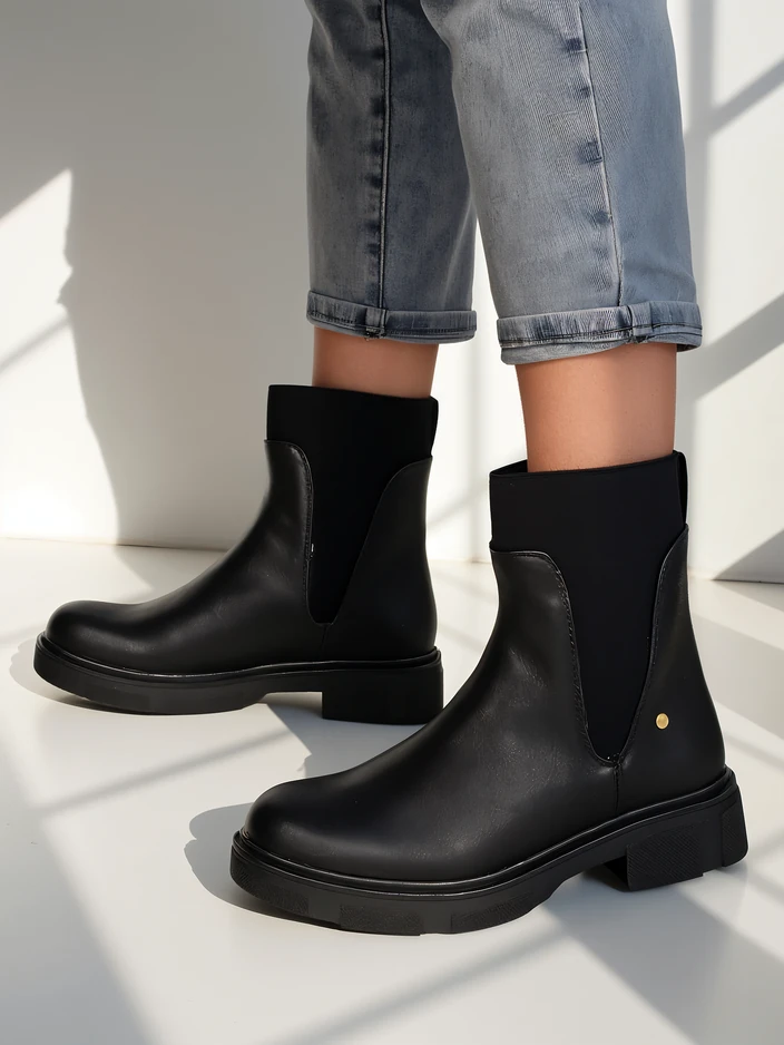 - Úžasné dámske členkové čižmy s plochým podpätkom, vyrobené z eco kože. Interiér je vyrobený z textilnej stielky. Elastické vložky po stranách zabezpečujú dokonalé prispôsobenie!
