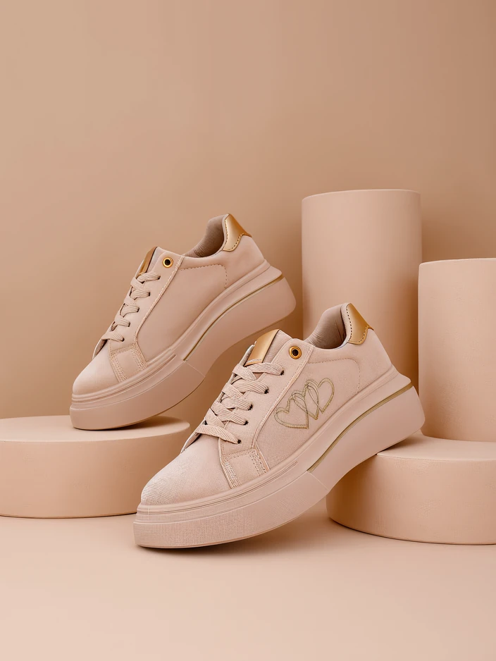 - Dámske športové tenisky s plochou podrážkou, vyrobené z ekokože. Model má ekologickú koženú vnútornú podrážku a je zdobený vyšitými srdiečkami. Skombinujte ich so širokými nohavicami a košeľou!