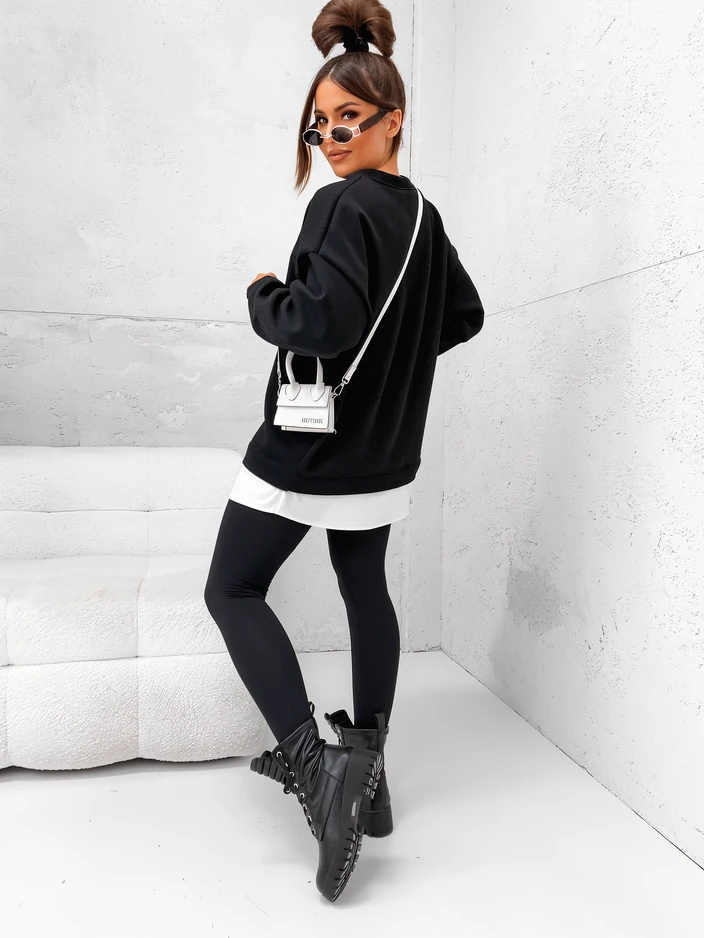 - Pridajte kúzlo svojim outfitom s našou oversized dámskou mikinou. Prehadzuje sa cez hlavu, má okrúhly výstrih a dlhé rukávy. Model má zipsom odnímateľnú spodnú časť, ktorá pripomína košeľu. Ideálne na každodenné nosenie, keď sa chcete cítiť pohodlne a zár
