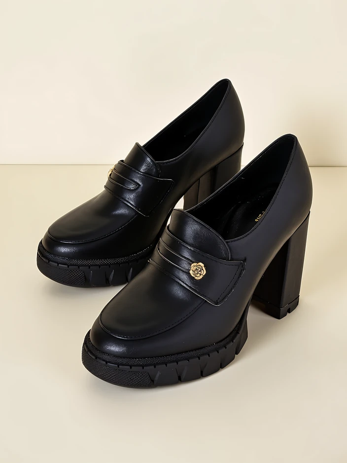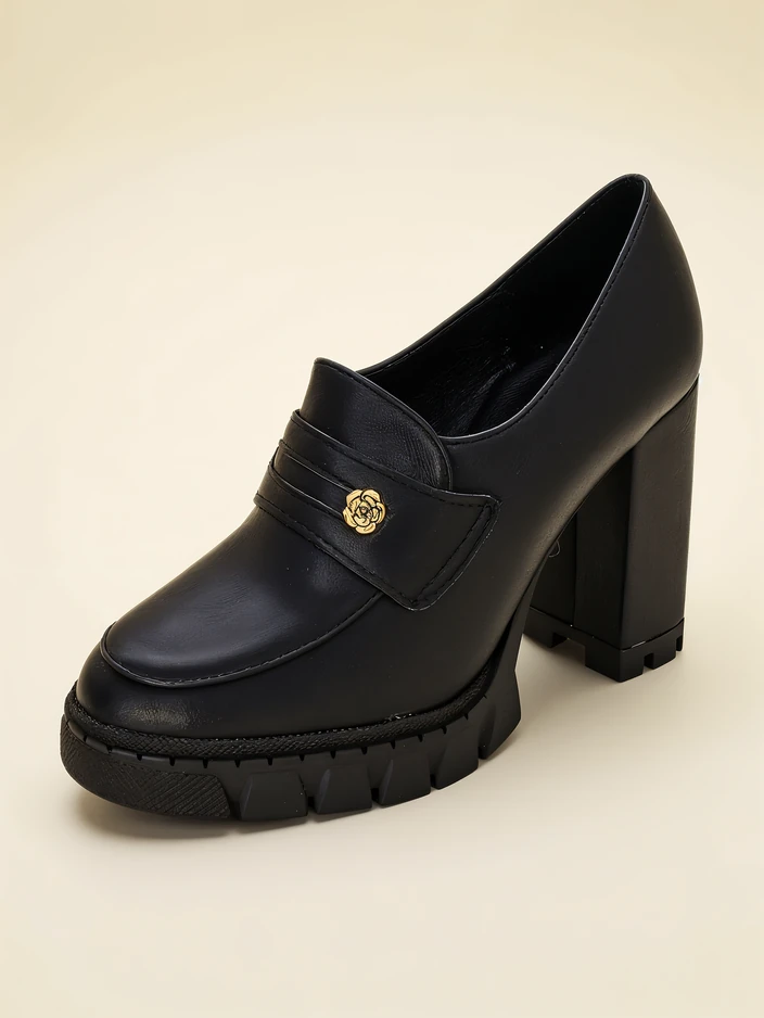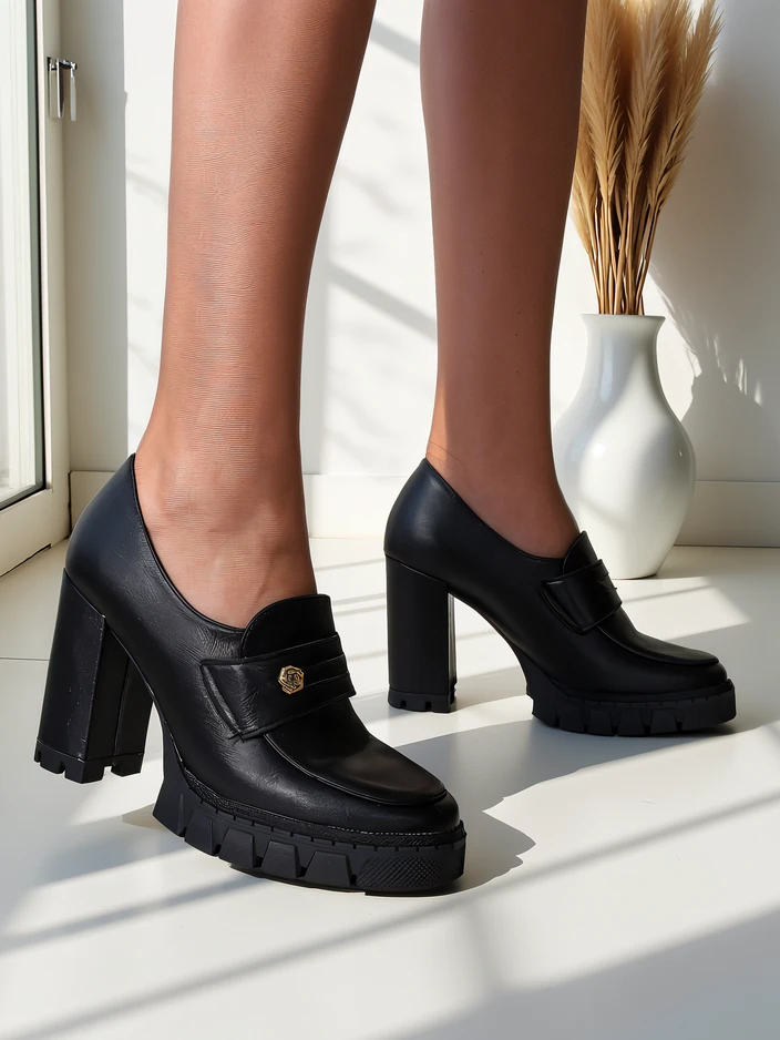 • Klasické dámske mokasíny s opätkom. Model je vyrobený úplne z eko kože. Obuv má jemnú dekoráciu na vršku. Ideálny každodenný základ!