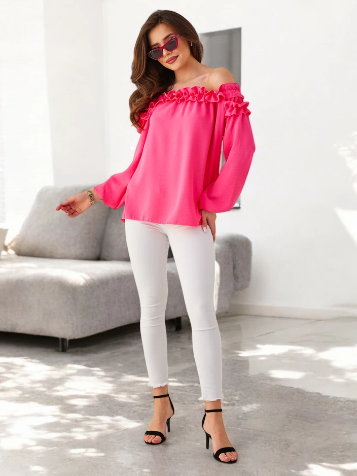 Royalfashion Ženská blúzka s odhalenými ramenami a volánikmi