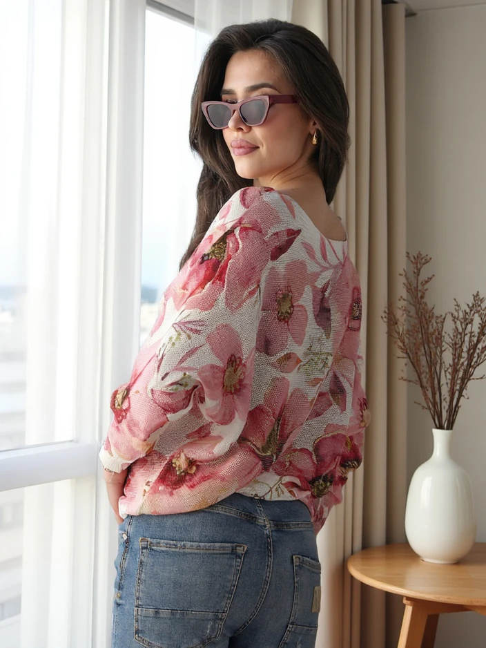 - Dámsky sveter s okrúhlym výstrihom vyrobený z príjemného materiálu. Model má dlhé rukávy a je navyše zdobený potlačou. Ideálny základ pre zimné outfity!