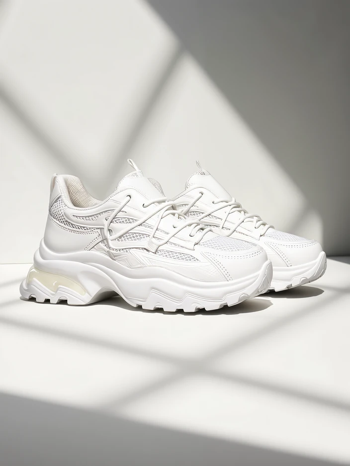 • Dámske športové tenisky s plochou podrážkou, vyrobené z eko-kože a tkaniny s gumovými vložkami. Model má tkaninovú stielku a hrubšiu podrážku. Kombinujte ich so širokými nohavicami a košeľou!