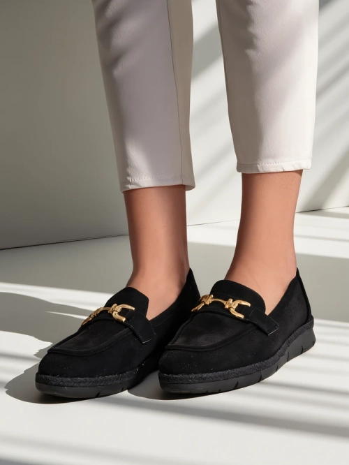 • Klasické dámske nazúvacie topánky s plochou podrážkou. Model je vyrobený z ekologickej semišovej kože a má ekokoženú vložku. Špica je ozdobená jemnou dekoráciou. Nevyhnutnosť v šatníku každej ženy!
