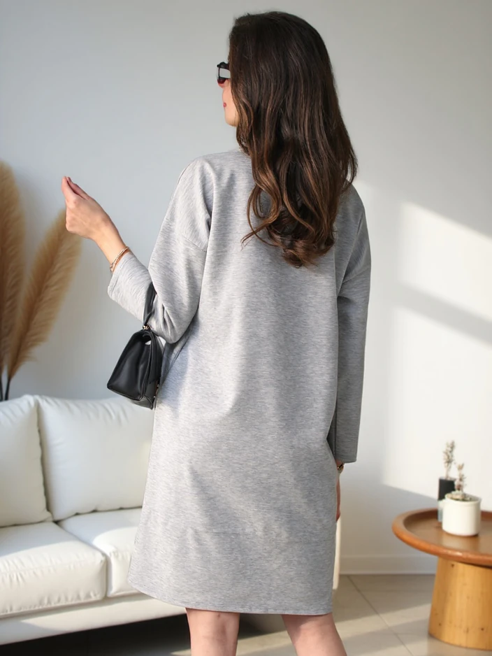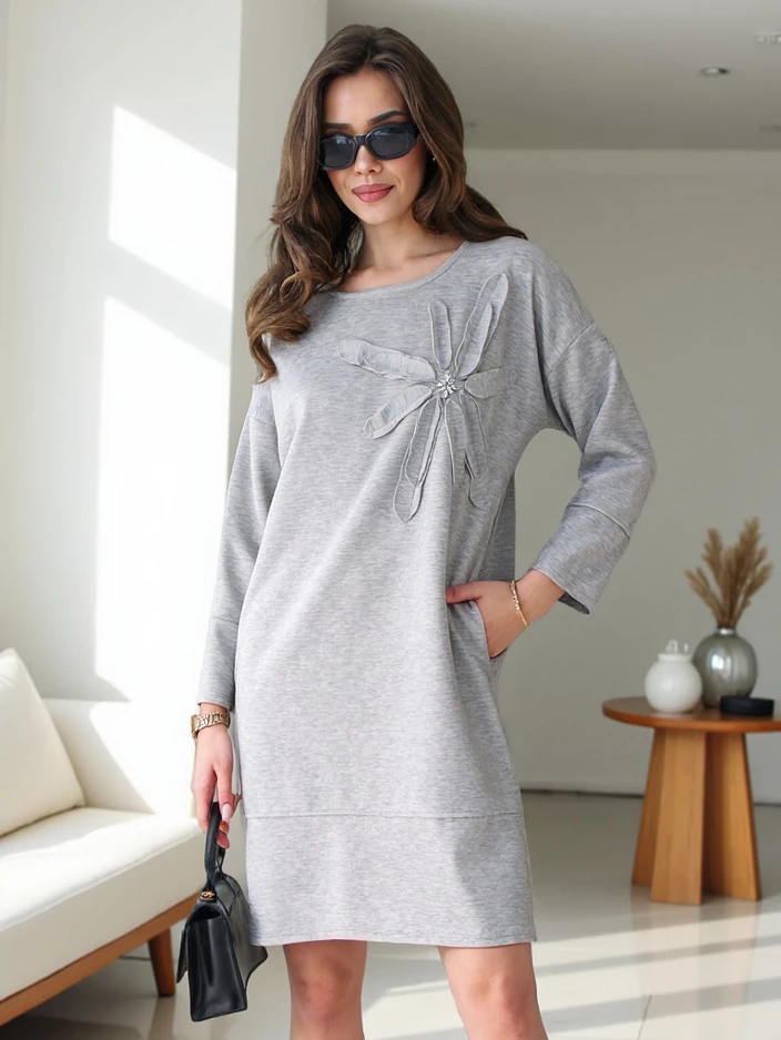 - Casual dámske šaty po kolená s 3/4 rukávmi a okrúhlym výstrihom. Model je zdobený dekoratívnou kvetinou. Nutnosť tohto sezónu! POZNÁMKA: Presnosť merania (+/-) 1 cm. Rozmery merané v pokoji.