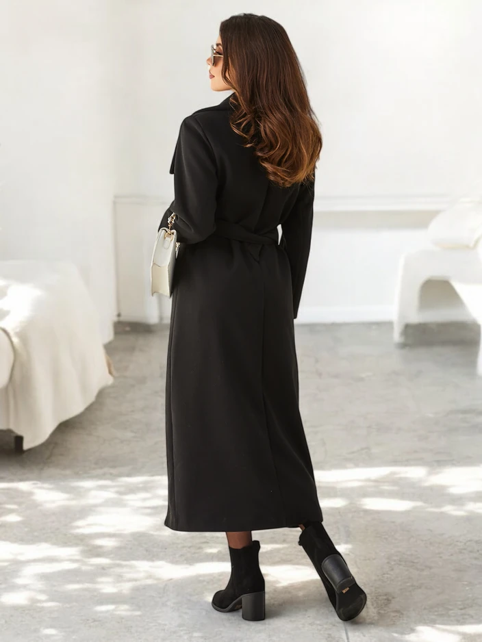 - Nadčasový dámsky kabát po členky s viazaným pásom v páse. Model má dlhé rukávy a zapínanie na gombíky. Má podšívku. Ideálna voľba na jeseň! POZNÁMKA: Presnosť merania (+/-) 1 cm. Rozmery merané v plochom stave.
