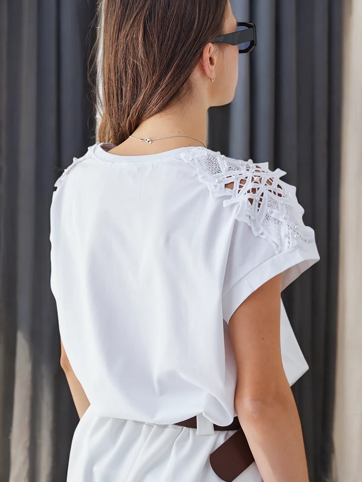 Royalfashion Dámske bavlnené tričko s čipkovými rukávmi