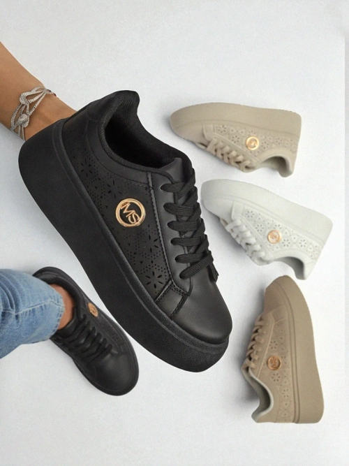 • Ženski ažurni superge iz eko usnja in tekstilnega vložka na platformi, ki združujejo udobje z modnim stilom. Idealne za vsak dan, zagotavljajo lahkotnost in udobje, subtilen dizajn pa doda eleganco vsaki stilski kombinaciji.