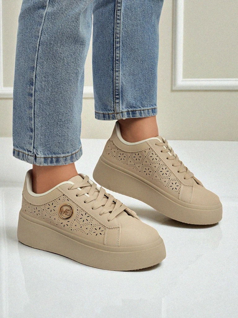 - Ženski ažurni superge iz eko usnja in tekstilnega vložka na platformi, ki združujejo udobje z modnim stilom. Idealne za vsak dan, zagotavljajo lahkotnost in udobje, subtilen dizajn pa doda eleganco vsaki stilizaciji.