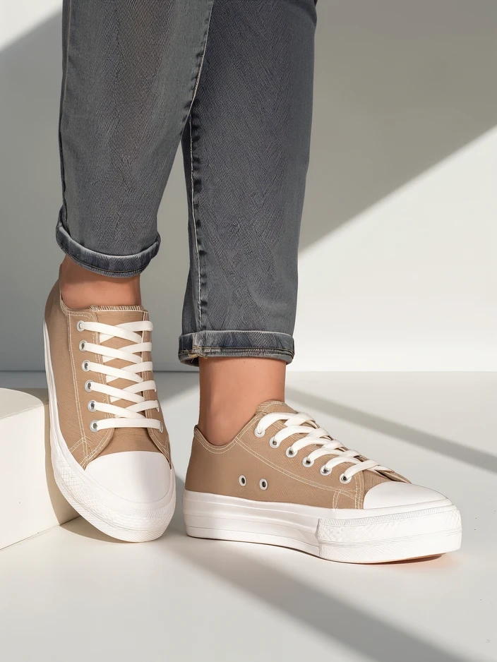 - Dámske tenisky vyrobené z textilného materiálu. Vrchná časť s dekoratívnymi šnúrkami. Klasická gumová podrážka. Tieto topánky budú skvelé na každodenné nosenie!