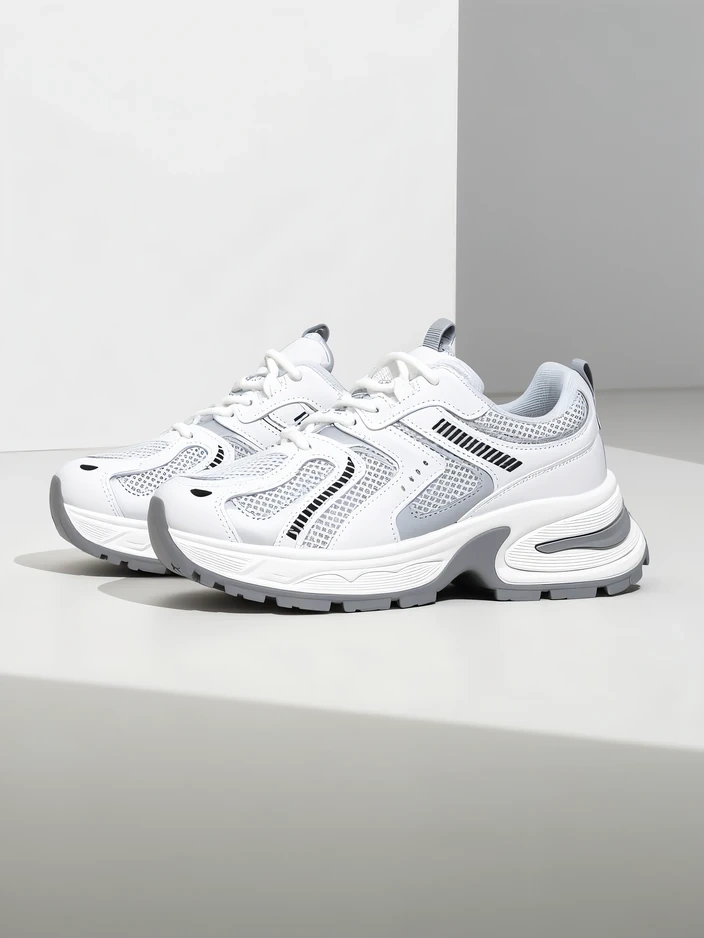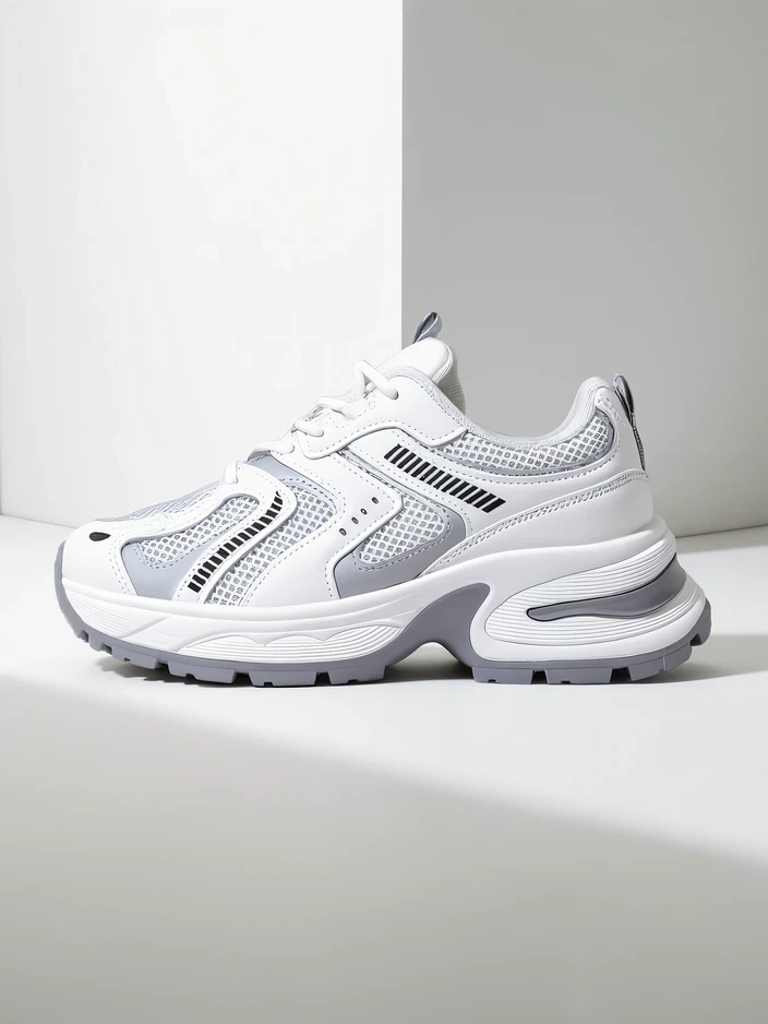 Aurelia Luna to damskie sneakersy marki Royalfashion, stworzone z myślą o aktywnych kobietach ceniących modę i wygodę. Ich cholewka wykonana jest z wysokiej jakości skóry ekologicznej, elastycznej tkaniny oraz przewiewnej siateczki, co zapewnia znakomitą wentylację i zapobiega nadmiernemu poceniu się stóp nawet podczas całodziennych spacerów. Materiały te są wybierane pod kątem trwałości oraz komfortu użytkowania, a użyty proces produkcji dba o precyzyjne wykończenie każdego detalu.Wkładka oraz wyściółka z miękkiej tkaniny gwarantują doskonałe dopasowanie oraz wygodę na każdym kroku, a płaski obcas i profilowana, amortyzująca podeszwa o wysokości 5 cm gwarantują idealną równowagę między wygodą a nowoczesnym designem. Buty są lekkie (waga z opakowaniem ok. 0,4 kg), co czyni je idealnym wyborem na co dzień.Kluczowe korzyści tych sneakersów to wygoda użytkowania oraz uniwersalny styl. Minimalistyczna kolorystyka – gołębi szary z nutą ecru – sprawia, że obuwie łatwo dopasować zarówno do sportowego, jak i casualowego looku.1. Połącz z legginsami i długim oversize’owym swetrem, by stworzyć luźny, casualowy zestaw na spacer lub zakupy.2. Załóż do jeansów typu mom fit i klasycznego T-shirtu – uzyskasz stylizację idealną do pracy lub na uczelnię.3. Sneakersy Aurelia Luna świetnie sprawdzą się także w zestawieniu z letnią sukienką midi i jeansową kurtką, dodając stylizacji sportowego sznytu. Aby zachować świeżość i ładny wygląd butów, czyść je regularnie wilgotną szmatką z dodatkiem łagodnego środka czyszczącego. Unikaj moczenia i suszenia na słońcu. Po sezonie schowaj je w suchym, przewiewnym miejscu, najlepiej w oryginalnym opakowaniu. Sneakersy na masywnej podeszwie to zdecydowany hit ostatnich sezonów i doskonale wpisują się w trend athleisure. Uniwersalne odcienie szarości i ecru pozwolą Ci z łatwością komponować je z różnymi stylizacjami, zgodnie z aktualnymi trendami mody miejskiej.