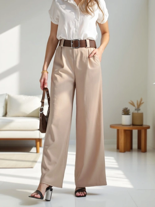 Royalfashion Dámske široké nohavice s opaskom