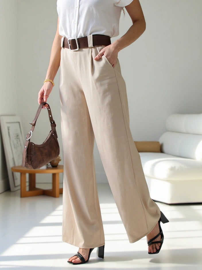 - Úžasné široké nohavice z ľahkej tkaniny, model má 2 vrecká a elastický pás. Navyše je súčasťou aj opasok. Nevyhnutnosť vo vašej garderóbe! POZNÁMKA: Presnosť merania (+/-) 1 cm.