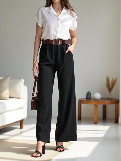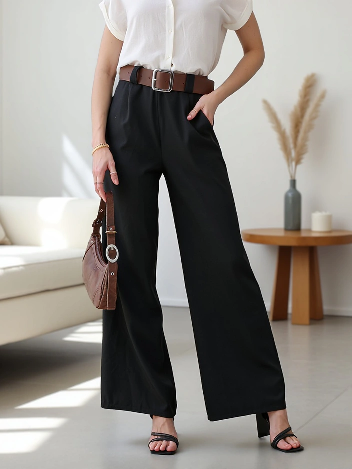 - Úžasné široké nohavice z ľahkej tkaniny, model má 2 vrecká a elastický pás. Navyše je súčasťou aj opasok. Nevyhnutnosť vo vašej garderóbe! POZNÁMKA: Presnosť merania (+/-) 1 cm.