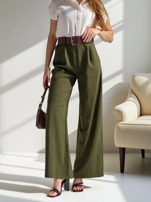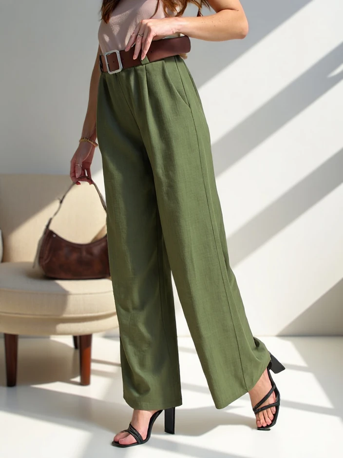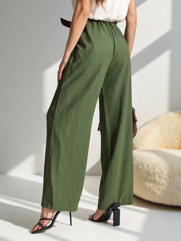 - Úžasné široké nohavice z ľahkej tkaniny, model má 2 vrecká a elastický pás. Navyše je súčasťou aj opasok. Nevyhnutnosť vo vašej garderóbe! POZNÁMKA: Presnosť merania (+/-) 1 cm.