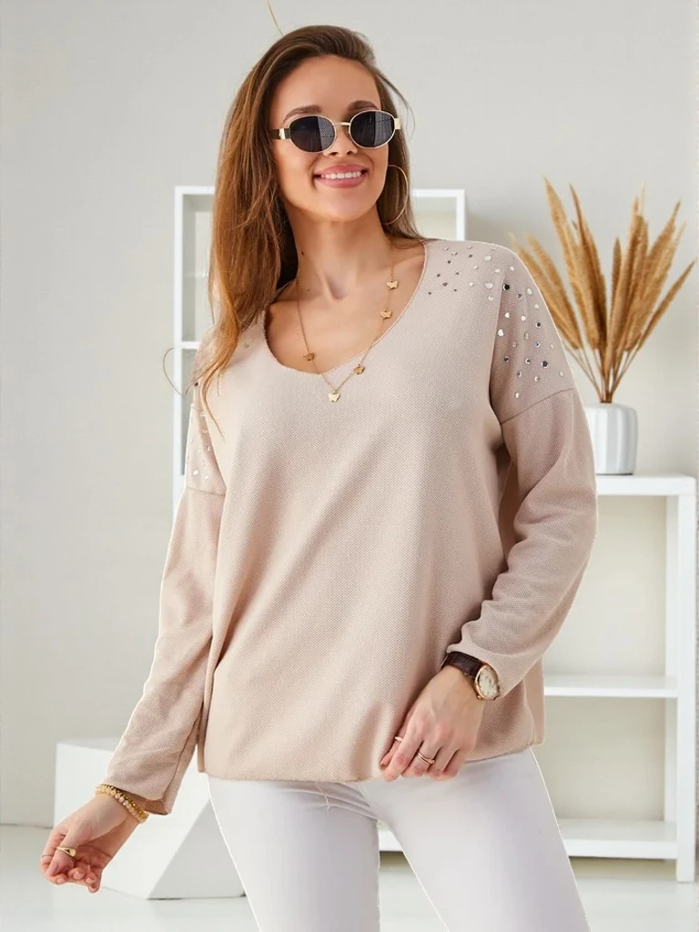 Royalfashion Dámsky tenký viskózový sveter s kamienkami na pleciach