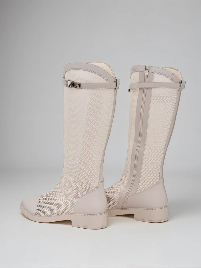 - Unikátne dámske členkové topánky vyrobené z materiálu podobného sieťovine a eko-kože s perforovaným povrchom a eko-koženou stielkou. Model sa zapína na zips. Perfektné na jesenné outfity!