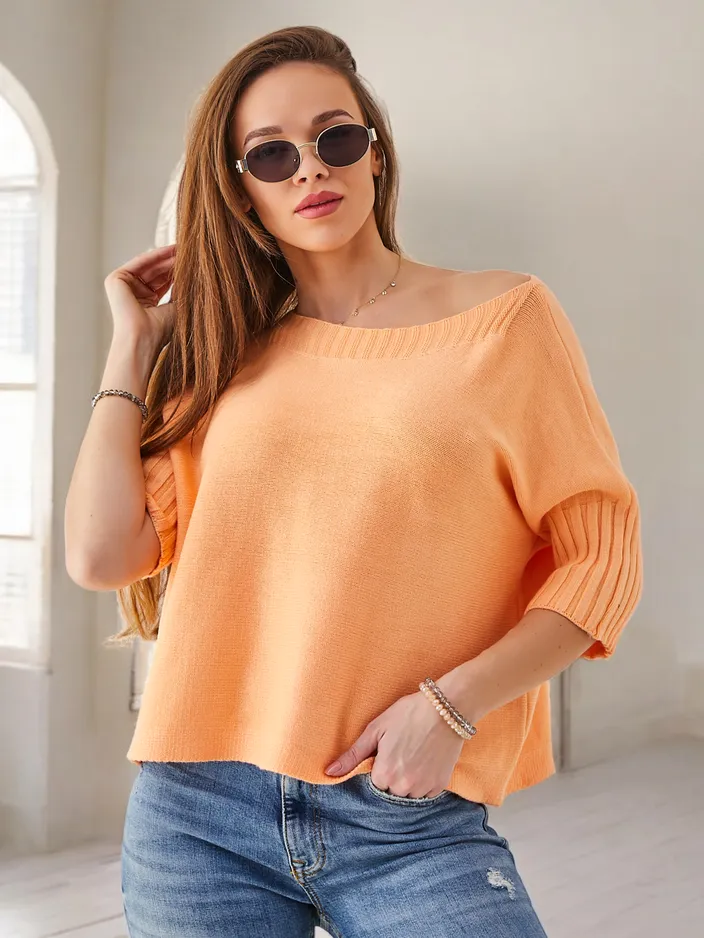 • Tento pôvabný dámsky sveter je ideálnou voľbou na chladnejšie dni. S krátkymi rukávmi a okrúhlym výstrihom poskytuje pohodlie a pocit štýlu!