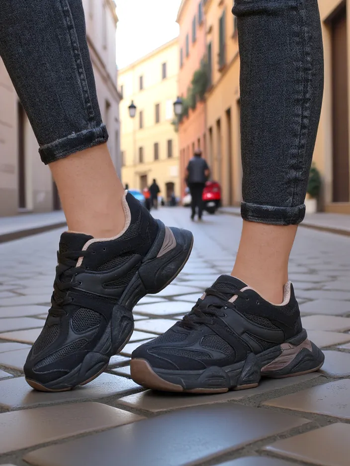 - Dámske športové topánky vyrobené z eko-nubuku a sieťoviny. Model s hrubšou podrážkou. Šnurovací zvršok. Skvele sa hodia k každodenným outfitom!