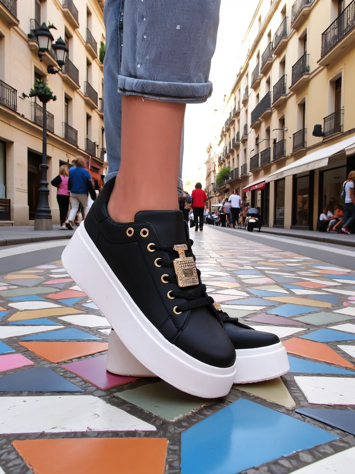 - Dámske tenisky s plochou podrážkou - dokonalá kombinácia štýlu a pohodlia. Obuv vyrobená z ekologickej kože. Model na šnurovanie s textilnou stielkou. Ideálne pre aktívnych ľudí!