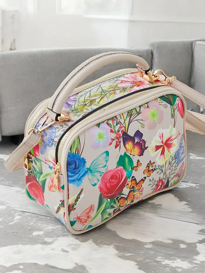 • kvetinová dámska kabelka, na zips, vyrobená z eko-kože. Model má 2 priehradky a vonkajšiu kapsu. Navyše má odnímateľný, nastaviteľný popruh. Ideálna na každodenné nosenie!