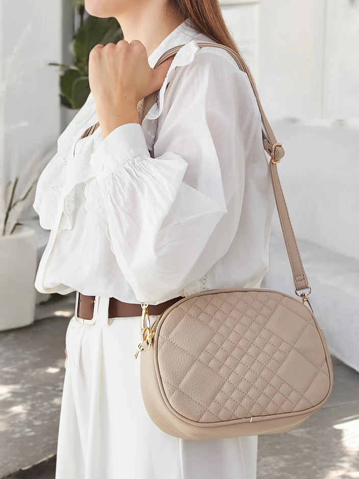 • Dámska oválna kabelka so zipsom, vyrobená z eko kože. Model má 3 priehradky a jednu vonkajšiu kapsu. Navyše je vybavená odnímateľným, nastaviteľným popruhom. Ideálna na každodenné použitie!